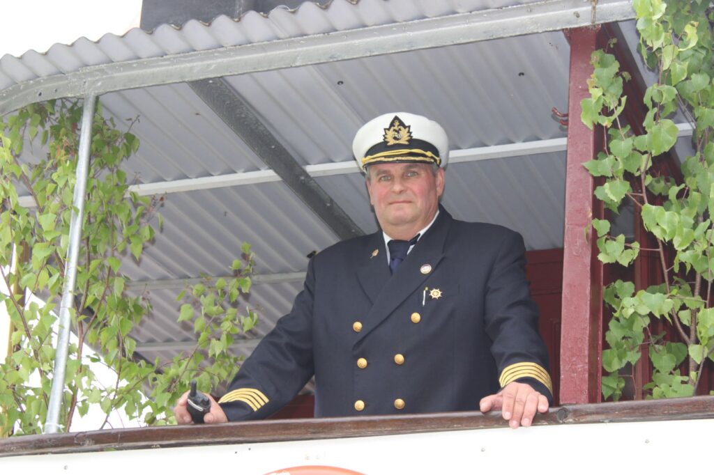 Takaisin tähän päivään ja juhannusristeilyymme. Ruokailun jälkeen palasimme vatsat pinkeänä ihailemaan maisemia. Kapteenin Salmen luo komentosillalle oli varsin usealla matkustajalla asiaa, ja onnekkaimmat pikkuihmiset saivatkin mahdollisuuden ohjata laivaa hetken aikaa kapteenin valvovan silmän alla. Myös höyrypillin vihellys oli suosittua puuhaa, tosin vain tarpeesta. Itse hätkähdin joka kerta pillin ääntä, ääni kun tuli korkealta ja kovaa.