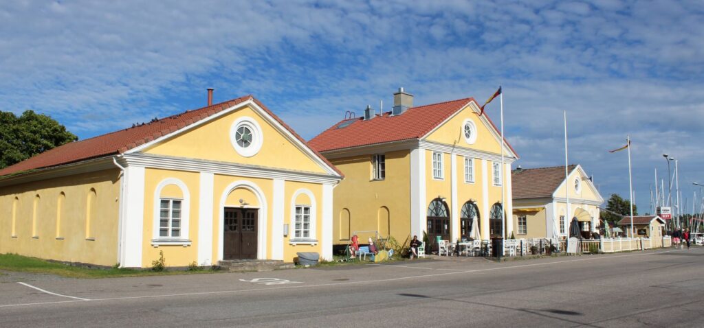 Heti satamassa on ehkä Taalintehtaan kuuluisin kolmikko, nimittäin auringossa hohtavat empirerakennukset, joissa on aiemmin ollut talli, viljamakasiini ja varasto. Nykyisin rakennuksissa on Ravintola Portside sekä Rosala Handelsbod, jossa toimii niin kahvila kuin taidenäyttelytila.