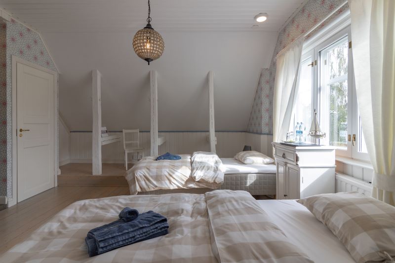 Lisää majoitustilaa löytyy alarannan Kapteenin rantahuvilan parvelta. Huvilan seinät ovat sisustettu mustavalkoisilla moottoriurheiluun liittyvillä kuvilla.