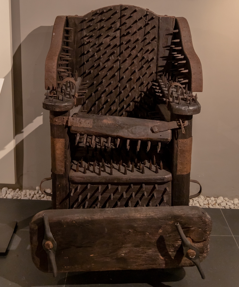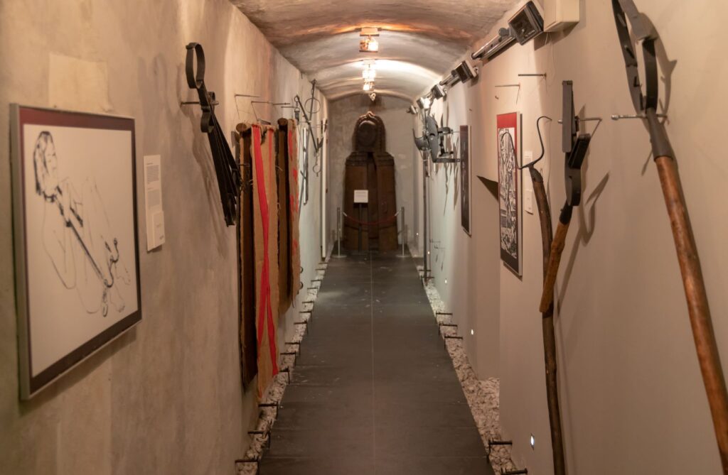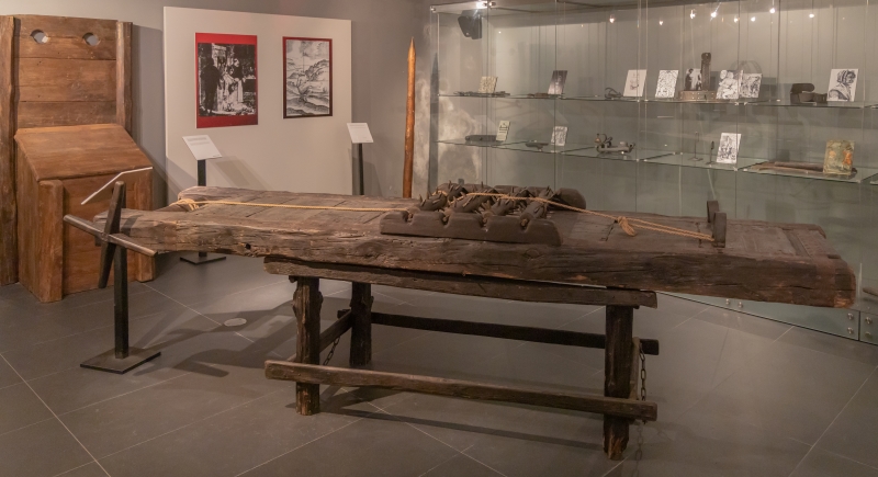 Kokoelmaa katsoessa ei jää epäselväksi, että eurooppalaisen kidutuksen historia on ollut erittäin raaka ja verinen. Syytetyksi saattoi joutua jos syytetty osasi rohdoilla parantamisen taidon, omisti väärän värisen kissan tai hiukset tai vain oli päättävien tahojen (kirkon) mukaan muusta ihmismassasta poikkeava. Ihon kylmiä väreitä lisää näyttelyn kuvien lisäksi autenttinen miljöö keskiaikaisilla vankiselleillä.