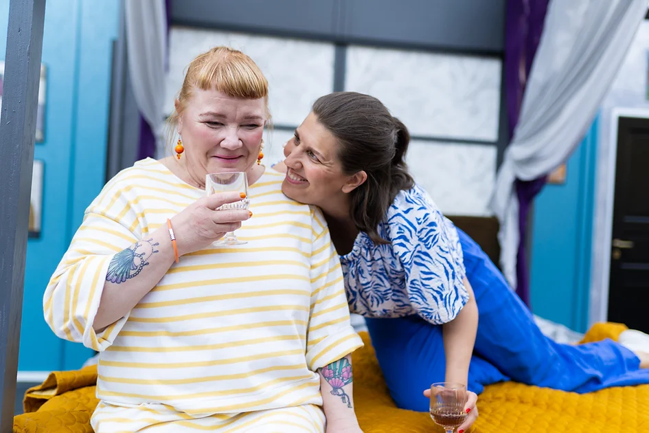 Tuplakuplan ensi-iltaan olikin kerääntynyt teatterin täydeltä iloisia ja odottavia ihmisiä. Eikä turhaan, nauru raikasi pitkin esitystä ja silmäkulmat täyttyivät ilon kyynelistä. Näyttelijät todellakin pistivät parastaan. Yleisö eli Hantan elämässä täysillä mukana ja täytyy sanoa, että Tuplakuplassa oli tekemisen meininkiä. Näytelmä olikin erittäin vahvojen naisten: Ilona Pukkila ja Minna Kivelä vetivät homman kotiin!