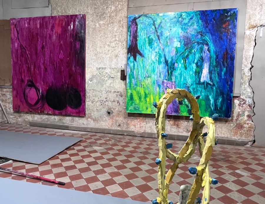 Paksupintaiset maalaukset, jotka elävät abstraktiota ja luonnon yksityiskohtia: oksia, kukkia, hedelmiä, leijuen kuin muruaineistossa, luoden tilan mielentilalle.